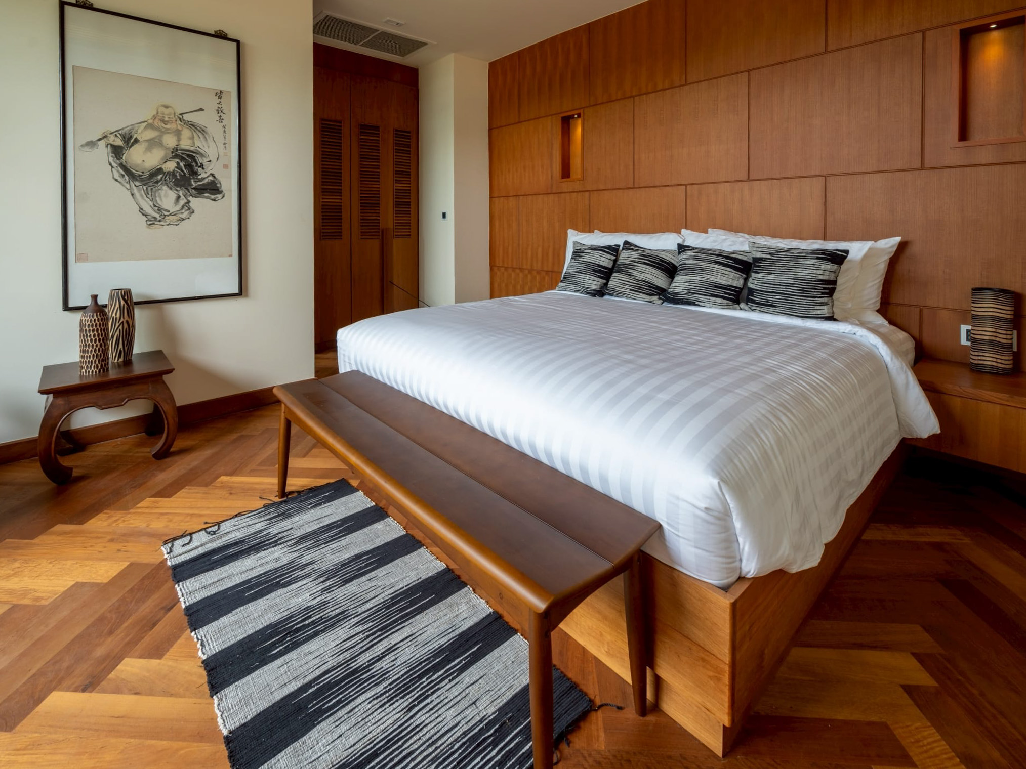 Each of the four bedrooms is uniquely styled and appointed with king-size built-in beds, Ritz Carlton-grade mattresses, and carefully themed decor.